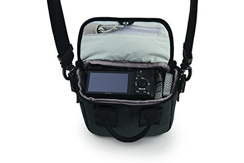 - Rugged canvas anti-theft camera bag fits mirrorless camera with mounted lens and extra small lens; ideal for any city, outdoor, or travel adventure.