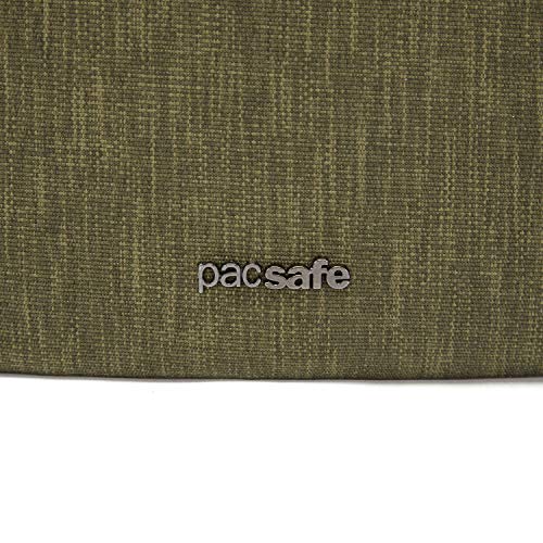 - DIMENSIONS, MATERIAL & - 6. 7"H x 9. 1"W x 0. 4"D, 0. 35 lbs. Made of soft, durable, water resistant & easy to wipe clean recycled Polyester to ensure secure & long-lasting usage everyday & during weekends. Comes with a 5-year Pacsafe .