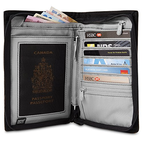 • High-security, RFID-blocking compact organizer ideal for traveling and keeping all essentials organized