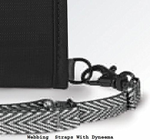 • RFIDsafe Blocking Material built into pocket helps protect IDs and credit cards from hacker scanning; secure bag to fixture with dual release buckles