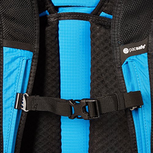 Details: Lightweight, performance driven, and secure, the venture safe x30 anti-theft adventure backpack from pacsafe is the ideal companion for any adventurous or outdoor activity. The bag's fabric is embedded with exomes slashguard, a stainless steel wire mesh that protects your gear from a quick slash-and-run theft. Dual release security buckles allow you to secure the bag to a fixture for added security, and the ultra-strong dyneema webbing straps help prevent cut-and-run theft. For extra security, the venture safe x30 is compatible with the pacsafe travel safe x15 portable safe. The rfidsafe blocking pocket helps prevent your data such as from e-passports, credit cards, and key cards from falling into the wrong hands. Additional thoughtful touchpoints, such as the built-in waterproof rain cover, soft touch breathable shoulder and waist straps, a hydration pack compartment that's padded and compatible for a 15 inch laptop, as well as multiple compartments for easy organization, all round out this sleek and adventurous backpack. Pacsafe keeps travelers one step ahead of the game by keeping their gear secure from opportunistic thieves with a wide range of stylish adventure backpacks, leisure bags, urban bags, women's bags, and camera bags, as well as luggage and travel accessories.