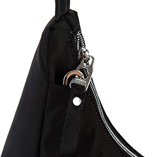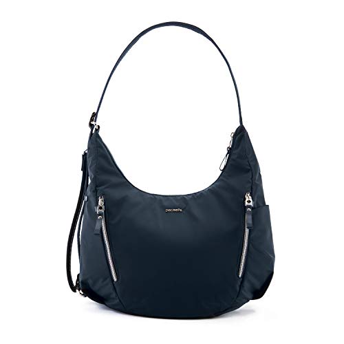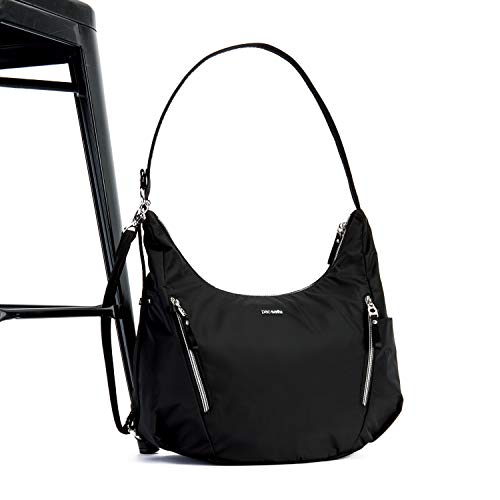 - DIMENSIONS, MATERIAL & - 9. 8"H x 13. 8"W x 5. 9"D, 0. 82 lbs. Made of soft, durable, water resistant & easy to wipe clean Polyester to ensure secure & long-lasting usage everyday & during weekends. Comes with a 5-year Pacsafe .