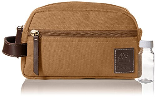 Details: The timberland canvas travel kit features genuine leather trim, an exterior zipper pocket and carrying handle.