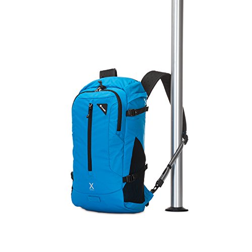 Details: Lightweight, performance driven, and secure, the venture safe x22 anti-theft adventure backpack from pacsafe is the ideal companion for any adventurous or outdoor activity. The bag's fabric is embedded with exomes slashguard, a stainless steel wire mesh that protects your gear from a quick slash-and-run theft. Dual release security buckles allow you to secure the bag to a fixture for added security, smart zipper security helps stop quick pickpockets, and the ultra-strong dyneema webbing straps help prevent cut-and-run theft. For extra security, the venture safe x22 is compatible with the pacsafe travel safe x15 portable safe. The rfidsafe blocking pocket helps prevent your data (such as from e-passports, credit cards, and key cards) from falling into the wrong hands. Additional thoughtful touchpoints, such as the built-in waterproof rain cover, soft touch breathable shoulder and waist straps, a hydration pack compartment that's padded and compatible for a 15 inch laptop, as well as multiple compartments for easy organization, all round out this sleek and adventurous backpack. Pacsafe keeps travelers one step ahead of the game by keeping their gear secure from opportunistic thieves with a wide range of stylish adventure backpacks, leisure bags, urban bags, women's bags, and camera bags, as well as luggage and travel accessories.