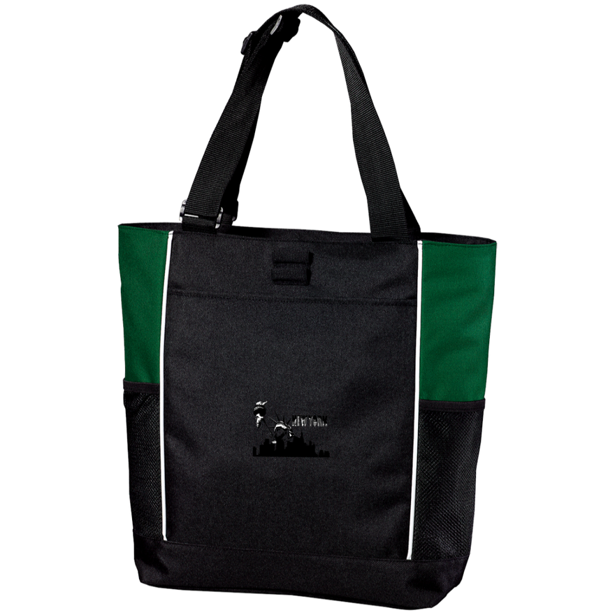 Zippered opening; Pen holder loops; Adjustable web handles; Large front pocket; Two side water bottle holders