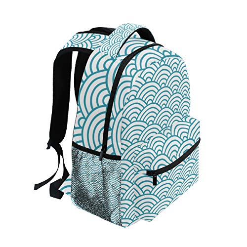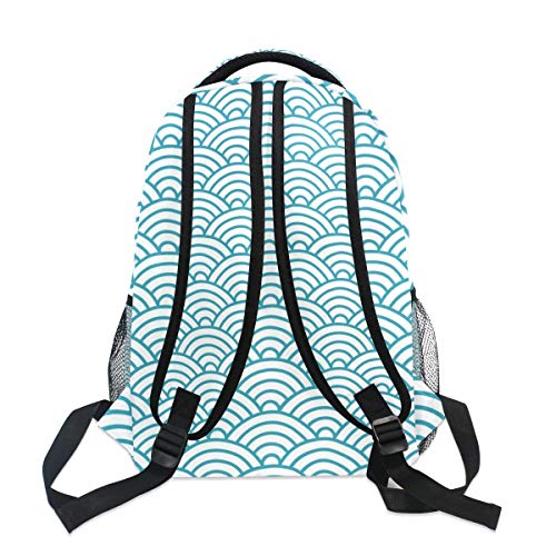 Stylish Japanese Seigaiha Waves Backpack- Lightweight School College Travel Bags, ChunBB 16" x 11.5" x 8"