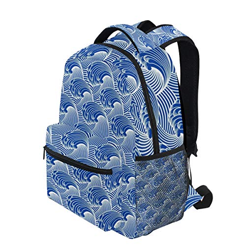 Stylish Vintage Japanese Waves Backpack- Lightweight School College Travel Bags, ChunBB 16" x 11.5" x 8"