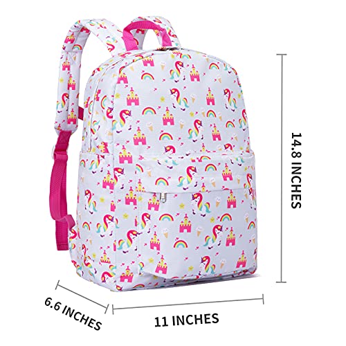 - Multi-functional compartments & lightweight: Measured by 14.9x 11x 6.6 inches 14 inches, Weighs 0.65LB. This kids backpack contains 1 roomy main compartment for communication folders, lunch bag, books, and toys,1 insert pouch inside to separate school supplies; 1 front pocket for pencil case and key, snack, etc. 2 side holders for the water bottle and umbrella.