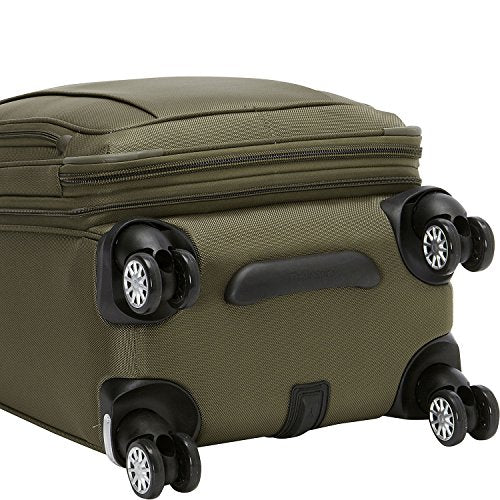 - Upright luggage measures 20-in. H x 14-in. L x 9-in. W (can expand an extra 2-in.); weighs 8.5 lbs.
