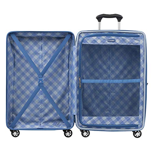 Details: Finally, an expandable, hardsided carry-on bag that is ultra-durable and ultra-light! Go big, stay light, and check it without worry! The Maxlite 5 Hardside Spinner gives you maximum packing space in an ultra-durable large checked bag, some conveniently designed with a 2 expansion option. Despite its lightweight construction, this bag is built tough with a flexible polycarbonate shell that protects contents while resisting cracking or splitting, a textured surface to help reduce visible scratching or scuff marks and molded corner guards that serve as built-in bumpers on high-wear points. An integrated TSA-compliant lock keeps contents secure while allowing authorities to unlock and relock the suitcase without damage when needed for inspection. Great for shorter or even longer trips, this collections' split case construction and interior divider panel provide separate packing compartments, and elastic hold-down straps keep everything in its place. Even at this size, mobility is easy on four 360 spinner wheels guided by the lightweight, height-adjustable PowerScope Lite handle with comfortable Contour Grip. Backed by Travelpro Built For A Lifetime Limited Warranty with our Trusted Companion Promise.
