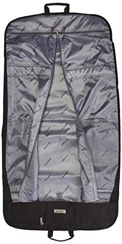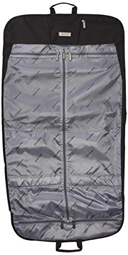 Details: Lightweight construction provides convenience When traveling as a carry-on. Durable, 900D polyester exterior with tear-resistant, fully lined interior. Front exterior Zip pocket is perfect for storing your airline ticket or other frequently needed items. Sturdy clip keeps your garments secure while traveling. Interior Features Dual mesh zipper pockets for shoes, undergarments, or other accessories. Bifold design will hold suits and dresses without wrinkling. Padded top handle allows for easy carrying and a convenient opening for hanging. Rear full length zippered pocket for additional storage. Business card sized I.D. Holder on rear exterior to store your contact information, to help prevent losing your luggage. Overall open Dimensions: 42.0" H x 22.0" L x 3.0" D; overall folded Dimensions: 21" H x 22" L x 6.0" D; Weight: 1.9 lbs. Includes a lifetime limited manufacture warranty.