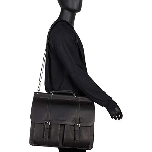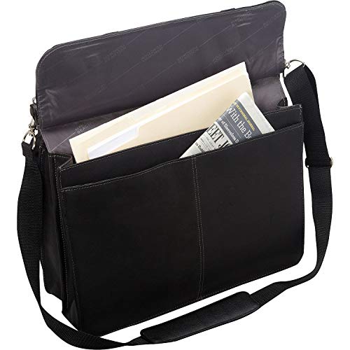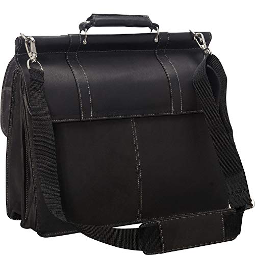 Details: Double gusset dowel rod portfolio computer case made in a rich full grain cowhide leather. Large, double gusset construction with secure tuck lock closures and fully lined interior. Front gusseted pockets have organizer features, including a cell phone pocket. Front compartment features a padded computer pocket to accommodate most laptops with up to a 15.4 inch screen. Rear compartment features easy access magnetic snap closure. Full length rear open top pocket. Sturdy top handle. Removable, adjustable and padded shoulder strap
