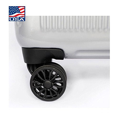 Details: -The Luna 20" Spinner from REVO is constructed from Bayer Makrolon polycarbonate making this carry-on virtually unbreakable and impact resistant. The Luna collection of luggage is made in Mira Loma, California using Eco-conscious practices in manufacturing. This suitcase is perfect for a weekend trip, with plenty of space in its two zippered packing compartments. The aluminum 8 rubber spinner wheels will keep this suitcase rolling smoothly, even on surfaces like cobble stone. A built in, recessed TSA lock protects your belongings.