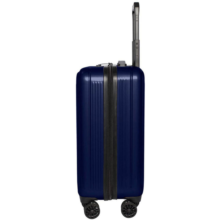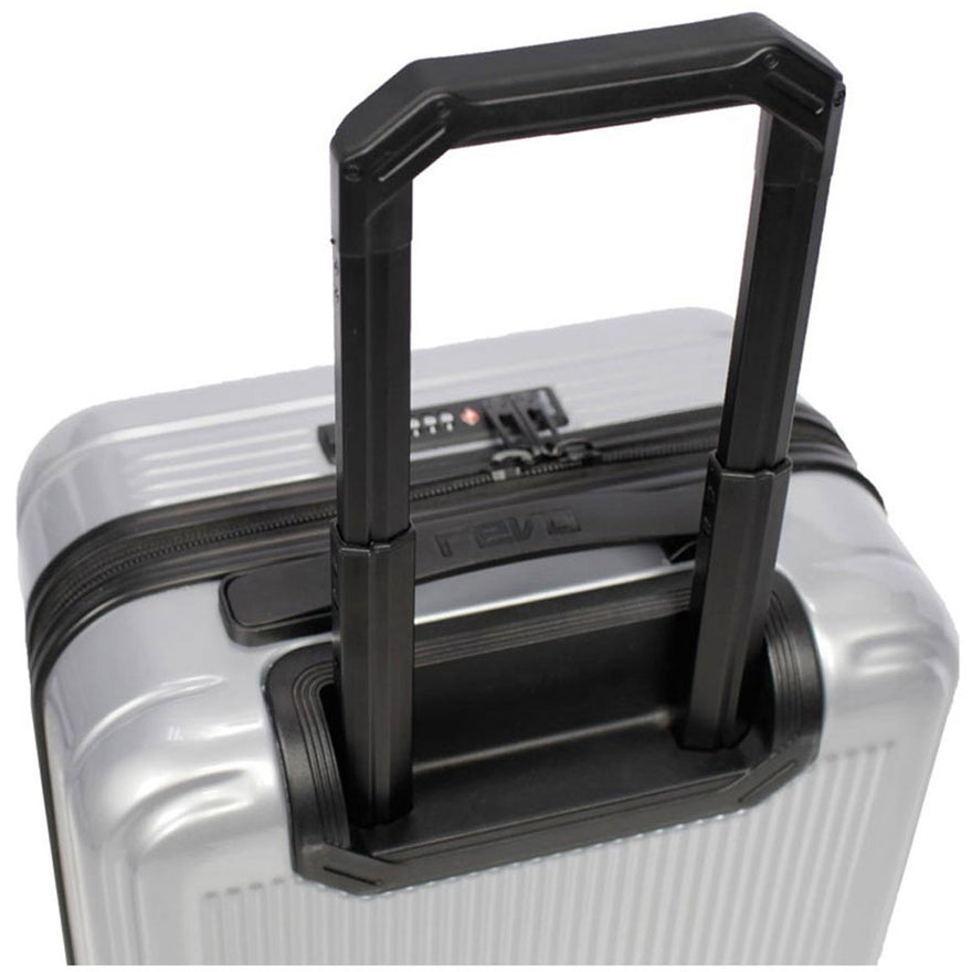 The Luna 20" Spinner from REVO is constructed from Bayer Makrolon polycarbonate making this carry-on virtually unbreakable and impact resistant. The Luna collection of luggage is made in Mira Loma, California using Eco-conscious practices in manufacturing. This suitcase is perfect for a weekend trip, with plenty of space in its two zippered packing compartments. The aluminum 8 rubber spinner wheels will keep this suitcase rolling smoothly, even on surfaces like cobble stone. A built in, recessed TSA lock protects your belongings.