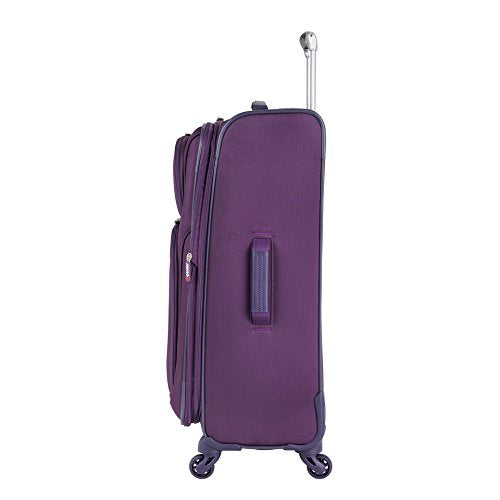 - Exterior features: Durable abrasion- and weather-resistant 420D polyester. Telescoping trolley handle; convenient top, side and bottom carry handle. 360° spinner wheels. Two roomy tip-out pockets. Lockable zippers. Expandable in-lid compartment. Discreet ID tag. All-around edge and corner protectors. Vegan leather accents.