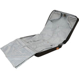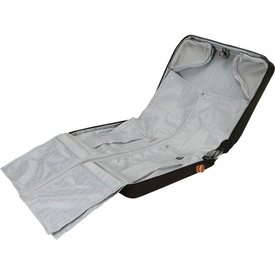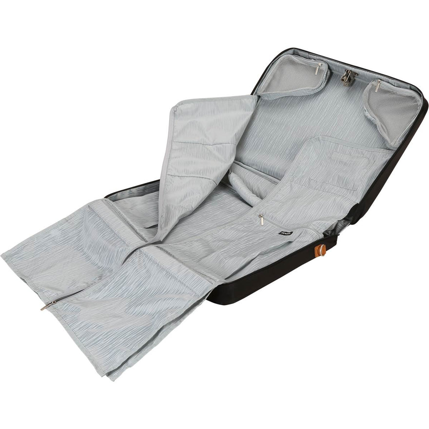 - SUITER SYSTEMmdash;Built-in metal suiter loop with flip-clasp closure, adjustable anti-wrinkle bar, and fold-out, center-zip fabric partition protect clothing on up to 8 hangers.