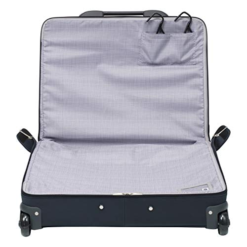 Details: A workhorse for business and wrinkle-free travels, this large garment bag with two inline wheels accommodates multiple suits, dresses, button down shirts, and shoes with plenty of room still left over for additional accessories in an array of pockets. Pack directly from your closet with the suiter system that fits all types of hangers and secures clothing en route. Our signature handling and two hang-anywhere hooks makes quick work of getting you down to business on arrival.