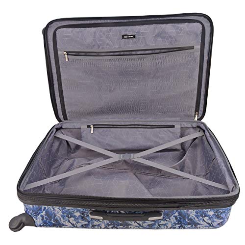 Details: 2.5-inch Expansion. Two-Compartment Packing: A zip-closed divider panel secures items and separates packing areas for easy well-organized travels. Zippered Mesh Pocket: Large in-divider pocket stores essentials easily in view. Utility Pocket: Versatile zippered pocket for corralling travel accessories. Tie-Down Straps: Elastic straps help keep items in place while traveling. Weight: 11 lb. Telescoping Trolley Handle. Soft-Grip Carry Handles. 360 degree Spinner Wheels.