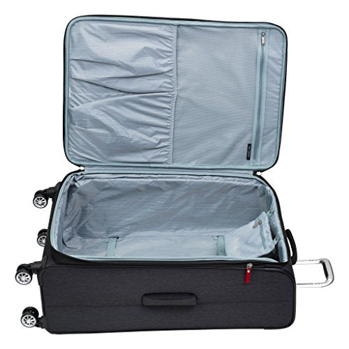 • Exterior Features: Extra-durable 600D water-resistant ripstop polyester Telescoping trolley handle; cushioned top and side carry handles. 360º spinner wheels. Three easy-access zippered pockets. Lockable zippers. Expandable. Discreet ID sleeve.