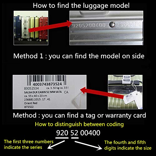 • 5,Please MAKE SURE if the serial numbers and size of the case is correct. If you are not sure, you can find it from tag or Luggage Body。