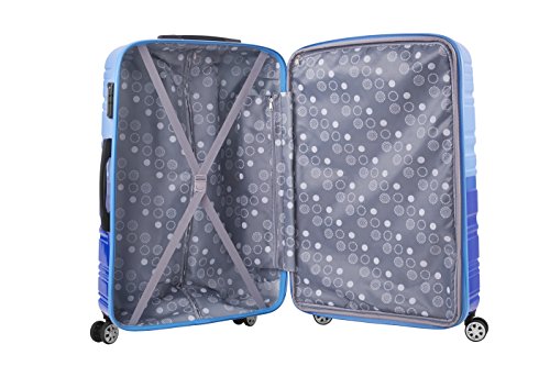 Details: This 2 PC. Set is made of polycarbonate. The major benefits of this material - it is extremely lightweight, it is durable, and protects the contents of your luggage. Eight multi directional spinner wheels rotate 360 degrees for easy maneuverability. This luggage allows you to pack more while avoiding the excess weight surcharges imposed by most airlines. Features: expandable, multi-directional spinner wheels for easy maneuverability. Modern internal chrome telescoping handle with push button handle. Interior mesh and zip pocket and elastic pocket. Measures: 20"X13"x9" weighs 6 lbs, 28"x17"x12" weighs 10 lbs.