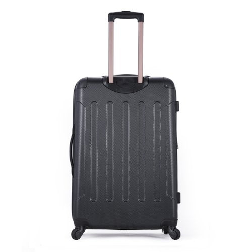 Details: This luggage is made of ABS. The major benefits of this material - it is extremely lightweight, it is durable, and protects the contents of your luggage. Eight multi directional spinner wheels rotate 360 degrees for easy maneuverability. This luggage allows you to pack more while avoiding the excess weight surcharges imposed by most airlines. Expandable multi-directional spinner wheels for easy maneuverability modern internal chrome telescoping handle with push button handle. Interior mesh and zip pocket and elastic pocket 5 year warranty 28"x17"x12" weighs 10 lbs.