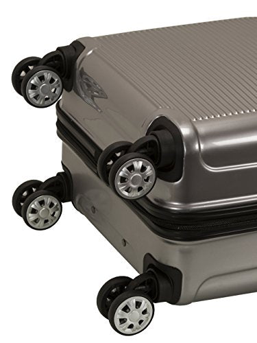 Details: This 3 PC. Set is made of polycarbonate/ABS. Polycarbonate is the same material used to Manufacturer bullet proof glass. The major benefits of this material - it is extremely lightweight, it is durable, and protects the contents of your luggage. Eight multi directional spinner wheels rotate 360 degrees for easy maneuverability. This luggage allows you to pack more while avoiding the excess weight surcharges imposed by most airlines. Multi-directional spinner wheels for easy maneuverability modern internal chrome telescoping handle with push button handle. Interior mesh and zip pocket and elastic pocket 20"X13"x9" weighs 6 lbs., 24" x15"x10" weights 8 lbs., 28"x17"x12" weighs 10 lbs.