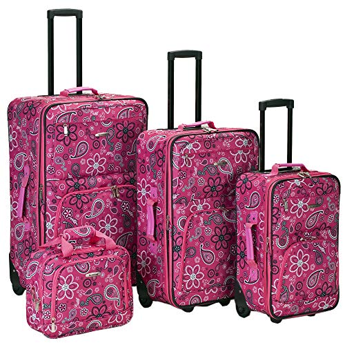 Details: This beautiful deluxe 4-piece expandable luggage setis manufactured with a patented heavy duty eva-molded hi-count fabric. this set is perfect for the serious and experienced traveler manufactured with the very best heavy duty polyester and pvc backing, this luggage set is designed for the traveler on the go and comes with three expandable uprights and a flight tote bag. it comes packed with features including: an inside retractable handle, ez-roll in-line skate wheels, back zippered secured pockets, top and side comfort grip handle, stability bars at the bottom to avoid tilting, and locks and keys. upright features include: clear in-line skate wheel system for smooth ride push-button self-locking internally stored retractable handle system ergonomic and comfortable padded top and side grip handles two front full size zipper-secured pockets three internal organizational pockets for all your traveling needs each upright's interior is fully lined with a durable and elegantly imprinted lining elegant silver pewter heavy duty industrial hardware carry-on flight tote bag features include: elegantly imprinted full interior lining detachable and adjustable non-slip shoulder strap spacious main compartment maximum strength industrial hardware 19-inch carry-on upright: 19 inches high x 13 inches wide x 8 inches expandable to 10 inches deep. 6 lbs. 24-inch upright: 24 inches high x 16 inches wide x 10 inches expandable to 12 inches deep. 8 lbs. 28-inch upright: 28 inches high x 18 inches wide x 12 inches expandable to 14 inches deep. 9 lbs. carry-on flight tote bag: 12 inches wide x 11 inches high x 5.5 inches deep – 1 lb.