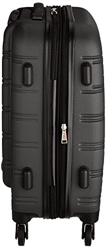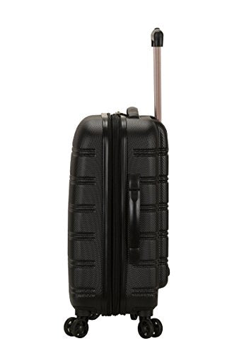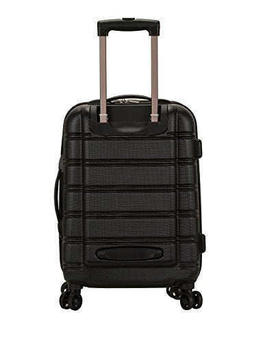 Details: This carryon is made of abs. The major benefits of this material - it is extremely lightweight, it is durable, and protects the contents of your luggage. Four multi directional spinner wheels rotate 360 degrees for easy maneuverability. This luggage allows you to pack more while avoiding the excess weight surcharges imposed by most airlines. Multi-directional spinner wheels for easy maneuverability. Modern internal chrome telescoping handle with push button handle. Interior mesh and zip pocket and elastic pocket. Measures 20 inchx13 inchx9 inch and weighs 7.5 lbs. Wheel design may vary between black and silver wheels
