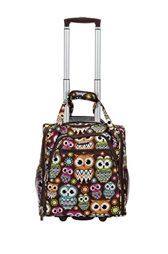 Details: Carry all your essentials in style and comfort with the Rockland wheeled under seat carry-on bag. Quilted polyester fabric exterior features a large main compartment for clothes, shoes and also has 2 slip pockets and two zippered pockets for keeping small essentials handy and organized. Retractable handle stores away while hand held handles allow for quickly grabbing bag from overhead bin or underneath seat. Back side has a strap allowing you to attach it to your wheeled carry on piece. This makes the perfect bag for overnight trips and the small size fits under near most airline seats allowing you to carry on your bag even when overhead bins are full. Measures 15 inch h x 14 inch w x 9 inch l