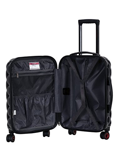 Details: This 3 PC. Set is made of polycarbonate/ABS. Polycarbonate is the same material used to Manufacturer bullet proof glass. The major benefits of this material - it is extremely lightweight, it is durable, and protects the contents of your luggage. Eight multi directional spinner wheels rotate 360 degrees for easy maneuverability. This luggage allows you to pack more while avoiding the excess weight surcharges imposed by most airlines. Multi-directional spinner wheels for easy maneuverability modern internal chrome telescoping handle with push button handle. Interior mesh and zip pocket and elastic pocket 20"X13"x9" weighs 6 lbs., 24" x15"x10" weights 8 lbs., 28"x17"x12" weighs 10 lbs.