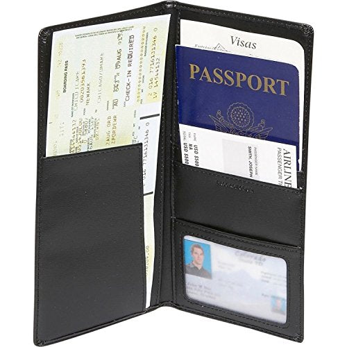 Details: Holds passport, airline tickets and boarding pass for easy retrieval. The leather case also features special pockets for documents and currency.