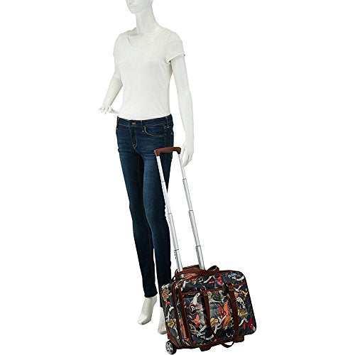 Details: The rolling tote features an interior pencil compartment, phone window pockets, and storage for files.