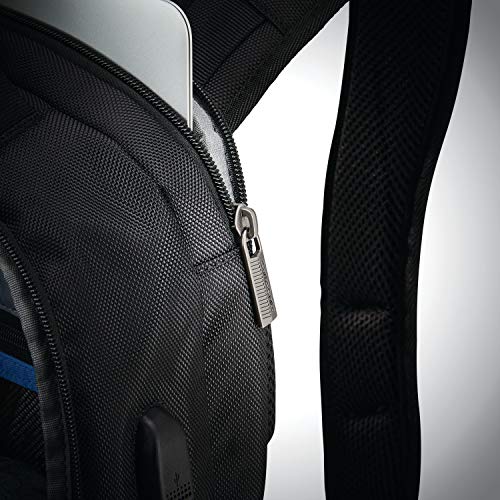 Details: Bursting with features, the Tucker Backpack is the answer to ultimate organization for on-the-go individuals. Made with durable, water-resistant rip-stop polyester, the Tucker Backpack holds a 15.6” laptop and has a separate, large main compartment for maximum capacity. Details including a built in USB socket for power connectivity, padded laptop compartment with a 45 degree peel-back opening, dedicated tablet sleeve, water bottle and phone pockets, comfort air-mesh padding and a plethora of organizational features make the Tucker Backpack the perfect partner for your busy day.