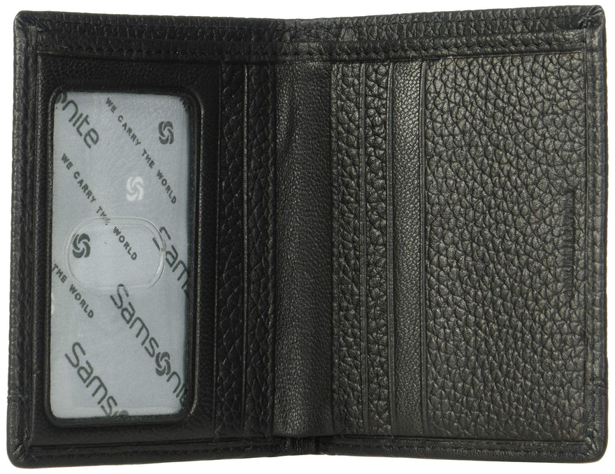 Details: Full grain pebble leather with goat nappa trim, Samsonite branded lining, debussed Samsonite signature logo and rfid blocking serene two-fold i.D. Wallet features 4 credit card pockets, 2 utility pockets and 1 i.D. Window.