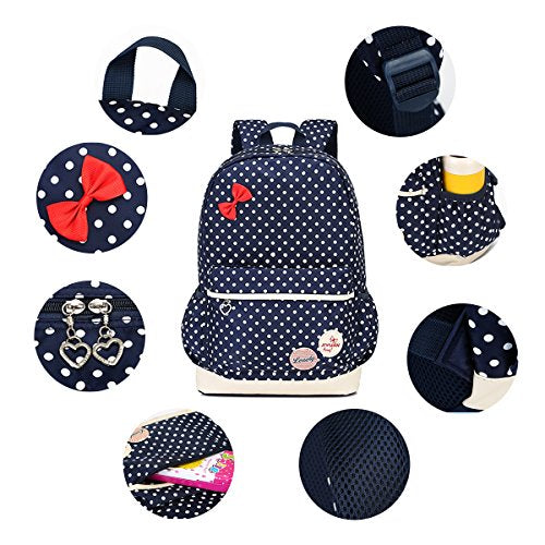 • Large Capacity - Approximate Dimensions: 10.6" x 4.7" x 16.5" (LxWxH). Durable cute polka dots casual daypack set, large school bag, laptop backpack, book bag, travel backpack for