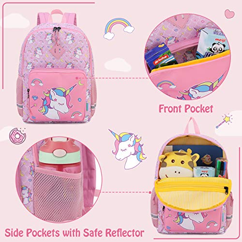 - 💟WELL-ORGANIZED:The preschool backpack is designed with a main compartment,a front pocket and two side pockets.The large compartment is suitable for kids to put their clothes,folders and the daycare essentials.With a zipper pocket and an flexible sleeve,it is easy for children to organize their belongings.The small compartment allows kids to put their favourite small toys.Elastic cup holders on the side are convenient for little one to stow their different size water bottles.