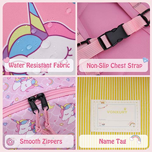 - 😊UNIQUE DESIGN: Featuring with colorful and unique Dinosaur/Unicorn/Astronaut pattern,VONXURY kids backpack will inspire your kids’ imagination and curiosity in their daily life.Constructed from lightweight and water-resistant materials,the toddler backpack provides good protection for your little child’s books,homework and other values.