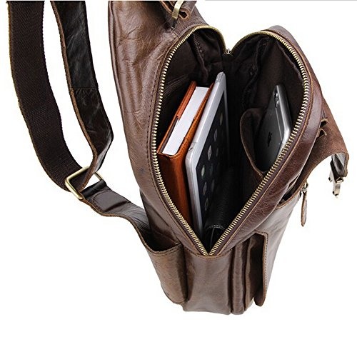 Sealinf Men'S Leather Outdoor Chest Cross Body Bag Fanny Backpack (Deep Brown)