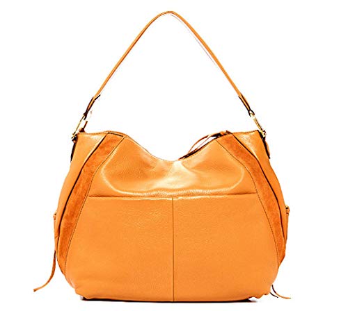 Details: Inspired by the rich colors found in the rural region of Tuscany, Italy, this Aimee Kestenberg leather hobo bag blends beauty with brilliance. A single handle tops the pebble leather and suede body to create a classic, slouchy look, while the removable tassel and goldtone hardware provide chic, on-trend details. The zipper closure opens to reveal Aimee's signature lining and multiple pockets that keep your essentials handy. From Aimee Kestenberg. - Style: Tuscany. - Pebble leather, calf suede details, single handle design, zip-top closure, two external back slip pockets, removable tassel, goldtone hardware. - Signature gray lined interior, back-wall zip pocket, two front-wall slip pockets. - Measures approximately 16-1/2"W x 14"H x 1"D with a 7" strap drop; weighs approximately 1 lb, 10 oz. - Body 100% cow leather; trim 100% calf suede leather; lining 100% polyester.