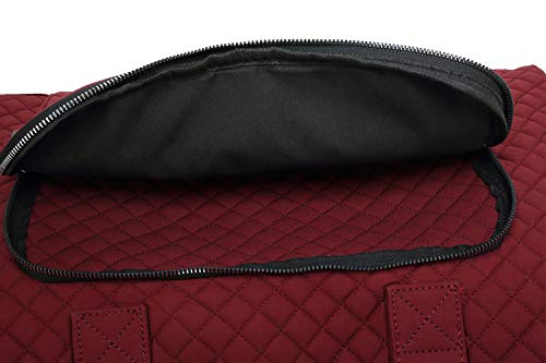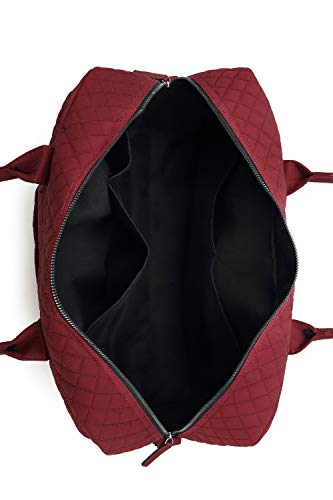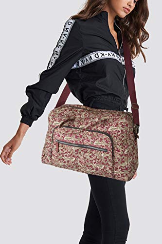 Details: NOTICE: This designer bag is part of the MKF Collection by Mia K. MATERIAL: Made of high-quality cotton Fabric lining FEATURE: Designed with luxurious silver tone hardware Top zip around closure Flat bottom to maintain the shape Lightweight and packable Short rolled handles Padded single detachable shoulder strap Light padded back Back trolley sleeve POCKETS: Interior features a spacious compartment with five wide roomy slip pockets and can accommodate a pair of flats, notebook, wallet, and daily essentials Exterior features two front spacious zipper pockets Two back small slip pockets MEASUREMENTS: 18 in L x 12.5 in H x 6.5 in D Handle Drop- 7 in Removable and adjustable shoulder strap -54 in