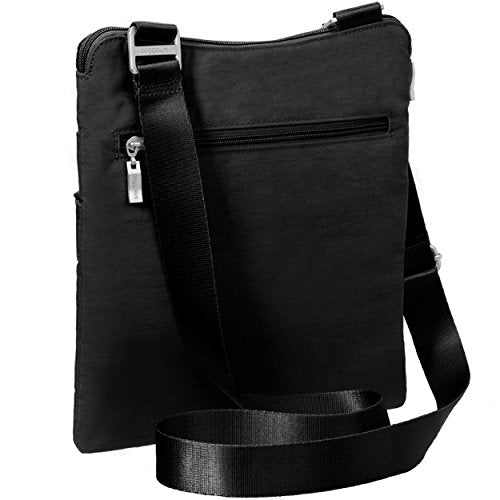 Details: The Baggallini Horizon crossbody bag is a slim profile bag that is ideal as a travel bag as well as an everyday one! The crossbodystyle and 52” adjustable strap keeps your hands freeand the interior and exterior pockets have a spot for all your necessities, keeping them organized and neat. The zippered exterior pockets keep your most important items, like a cell phone, camera or credit card, close by, easy to access and safe. Made of lightweight, water-resistant nylon, this spacious bag can hold it all without becoming too heavy. Additionally, this bag comes with a removable wristlet.