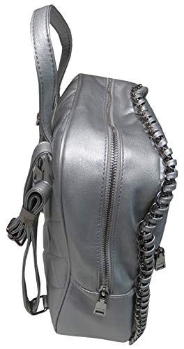 - Adjustable Shoulder Straps; Silver Tone Hardware