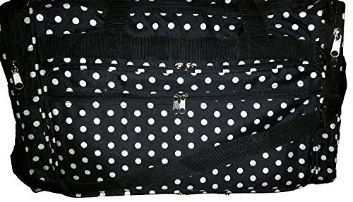 Details: This 22 inch long fashion Duffel features all the needs to pack for the overnight stay. 4 exterior zipper closure storage compartments: 2 on ends of the duffle bag and 2 on the front of Duffle Bag. Dimensions: 22" L x 12" W x 13" H. 300D Polyester with Nylon lining - Wipe Clean Surface