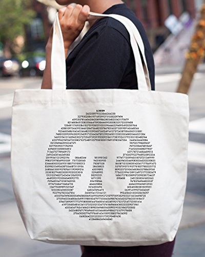 Details: For the irrational mathematician. Machine wash cold, gentle cycle. Tumble dry low, warm iron if needed. Made with 100% eco-friendly recycled cotton canvas. Width: 18" Height: 14.5" Gusset: 5" Shoulder Straps: 22" ---- NOTE: When you first open the bag you will notice an odor from the printing (non toxic). Simply hang the bag outside for about an hour, and the smell will dissipate. ---