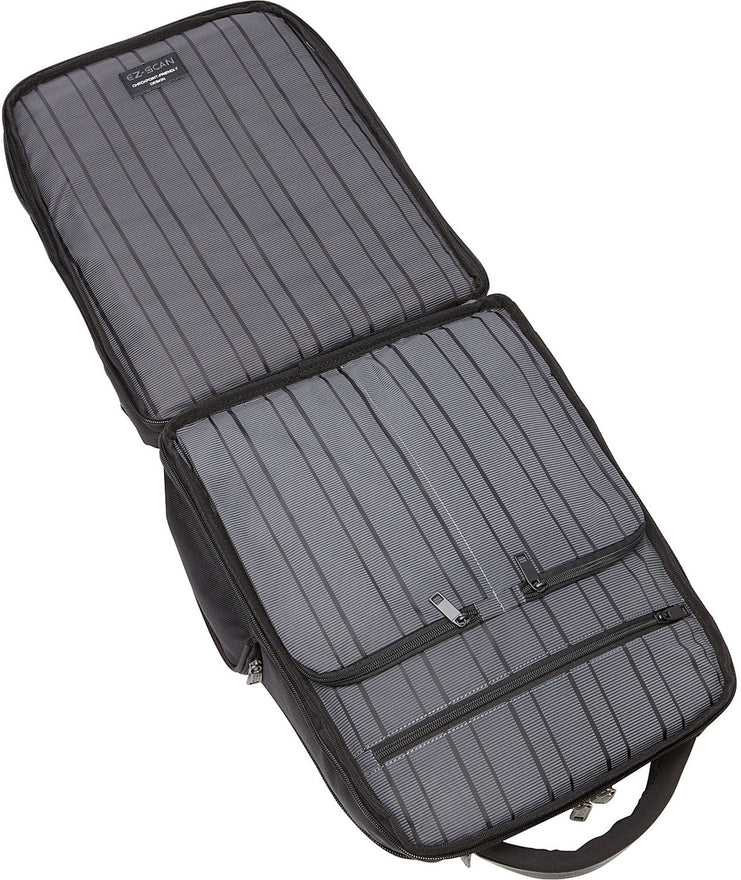 - EZ-Scan laptop compartment features 3 secure zipper pockets