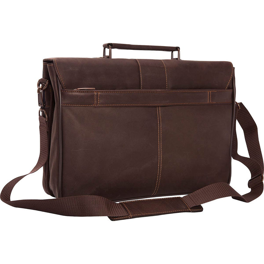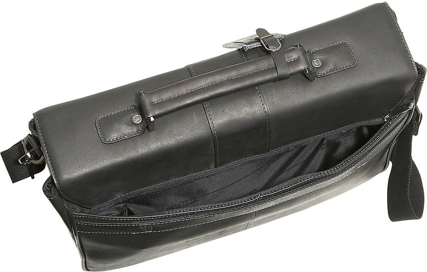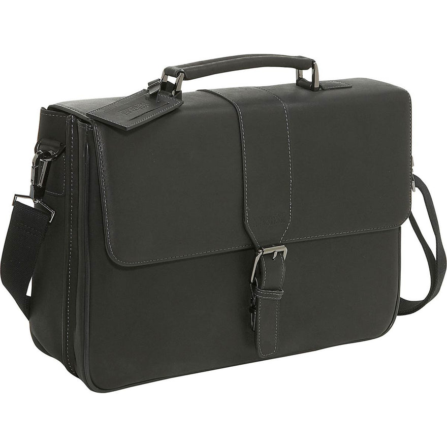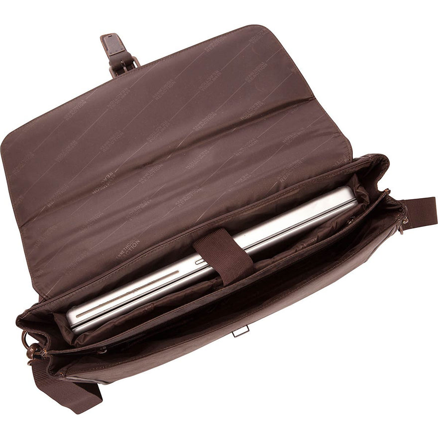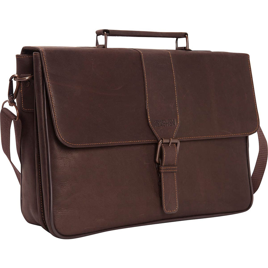 Keep your laptop computer well-protected and your other business essentials stylishly stowed and neatly organized while you're on-the-go in the Kenneth Cole Reaction Till Death Do Us Port Leather Laptop Briefcase. This soft, smooth, supple, and luxurious full-grain cowhide leather mobile office features double gusset, flapover construction and a sturdy, structured shape. It has a secure Velcro closure with buckle detail, and it contains a padded laptop computer compartment; a file compartment; and an organizational panel with pen loops, credit card slots, and a cell phone slide pocket. The Kenneth Cole Reaction Till Death Do Us Port Leather Laptop Briefcase comes with both a top handle and a padded, adjustable shoulder strap for carrying comfort and versatility.