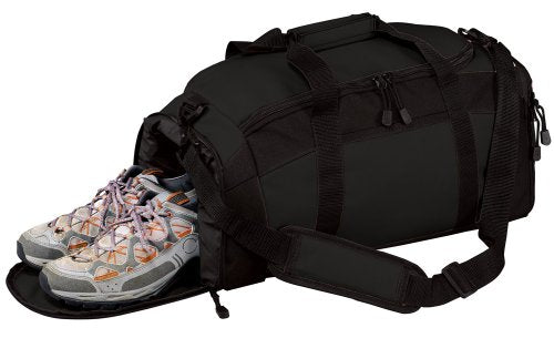 Details: From warm-up to cool-down this budget-friendly bag holds everything you need to work out. 600 denier polyester Front pocket and side zippered pocket Wet pouch for pool or gym Adjustable detachable padded shoulder strap Dimensions: 10.75"h x 20.75"w x 9.5"d; Approx. 2 119 cubic inches Bags not intended for use by children 12 and under.