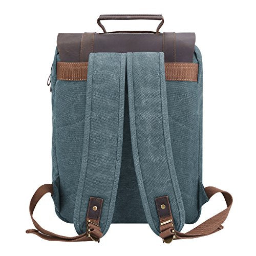 1 x S-ZONE Retro Canvas Leather School Travel Backpack Rucksack 15.6-inch Laptop Bag