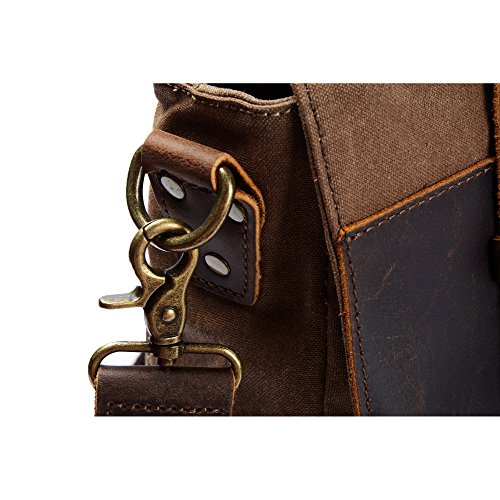- The messenger bag is made of high density washed canvas, genuine crazy horse leather, bronze hardware and high-density cotton straps